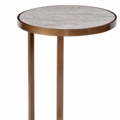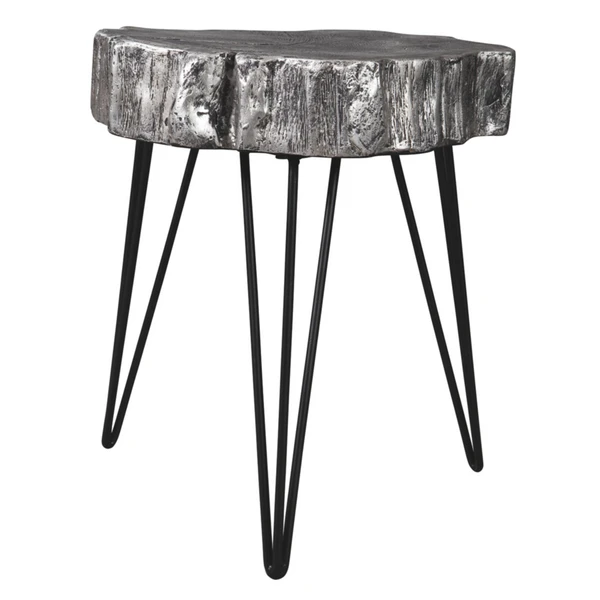 Add a touch of organic elegance to your space with this accent table, designed with hairpin legs and a faux-wood top finished in antiqued silver.