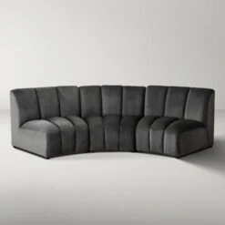 Comfort can be classy and stylish, and Jayce is proof. With its curved, armless silhouette and deep channel-tufted upholstery filled with plush padding, this sectional brings modern style and luxurious comfort to the living room. Shown in Velvet Charcoal.