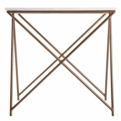 The Livorna End Table table is square featuring a cast glass top surrounded by gold finished metal base. Glass casting is the method in which glass items are made by directing molten glass into a mold where it hardens. This technique has been used since the Egyptian period.