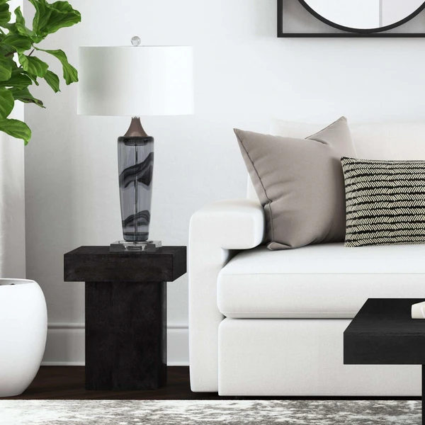 The Novak collection features clean lines in a solid mango construction with a dusty black finish. The sharp lines and matte black finish give the collection a modern flair. Finished in a dusty black allowing some grain to show through.