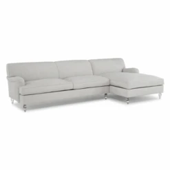 Designed with English arms, graceful turned legs, and neatly tailored upholstery, the designs in our Peyton Collection will never go out of style. Reinforced kiln-dried hardwood frames set a sturdy foundation while high-density foam padding ensures long-lasting comfort. Shown in Maxwell Linen Pearl Grey with turned espresso legs.